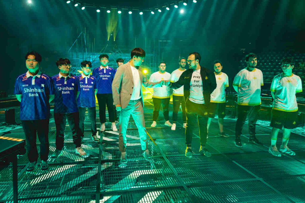 A partida de abertura contou com duas grandes equipes, de diferentes regiões. Pelo sistema de franquia da EMEA, tivemos a poderosa francesa Karmine Corps. A equipe recebeu um hype extremo, por conta da sua torcida gigantesca. Do outro lado, tivemos uma das convidadas, vindo lá da China, a FunPlus Phoenix.