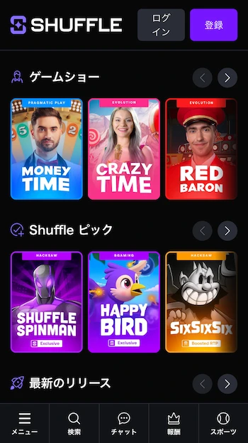 オンカジ 仮想通貨 専用サイトおすすめ7位: シャッフルカジノ