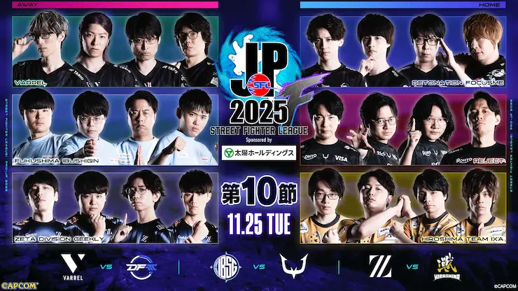 11月26日、株式会社カプコンは11月25日(火)に行われた「ストリートファイターリーグ: Pro-JP 2025 Division F 第10節」の試合速報を通知した。本戦をもってDivision Fの全日程が終了し、上位3チームがプレイオフへの進出権を獲得する。