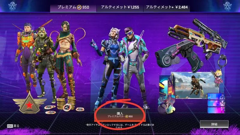 - プレミアム・アルティメット・アルティメット+のなかから自分が欲しいバトルパスを選択して購入する