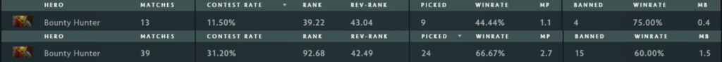 According to statistics by Spectral from October 9-19, Bounty Hunter was contested 13 times out of 113 matches. That nearly tripled to 39 contests out of 125 games in the draft from October 19 to November 2.